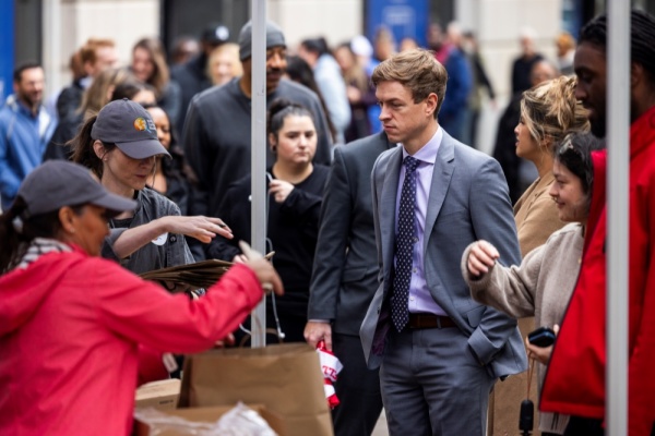 在纽约布朗克斯区,一家食品分发站外等候的人数比平时多了大约200人,许多人带着可折叠的购物车,排起了跨越数个街区的长队。他们从成堆的水果、蔬菜、面包、牛奶、果汁、干粮和现成三明治中挑选食物,有些人凌晨4点就来了。