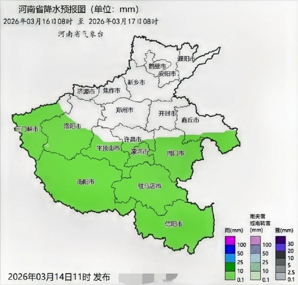 今天的降水是本轮降水天气的收尾,接下来明天16日夜间到17日,新一轮全省性小雨将再次铺开。17日当天,东部和南部部分地区有中雨,局部甚至有大雨。此后,17日至19日,全省仍有持续的降水过程。以上的降水量预报图显示,河南有大半的地区将会迎来降水天气,降水主要是集中在西部、南部和东部。