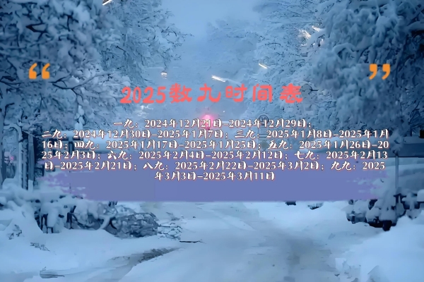 就拿今年来说,"入九"是在12月21日,"出九"是在2025年3月12日,最后的"三九"是从2025年1月8日开始的。具体详情请看下图: