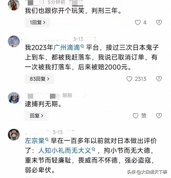 想想确实也是如此,过去日本侵略者对我们所犯下的滔天罪行罄竹难书。而今,为数不少的日本人非但不对自己过往的滔天罪行反省检讨,反倒还敢心存歹意,也难怪众网友群情激愤、群起而欲"诛"之。