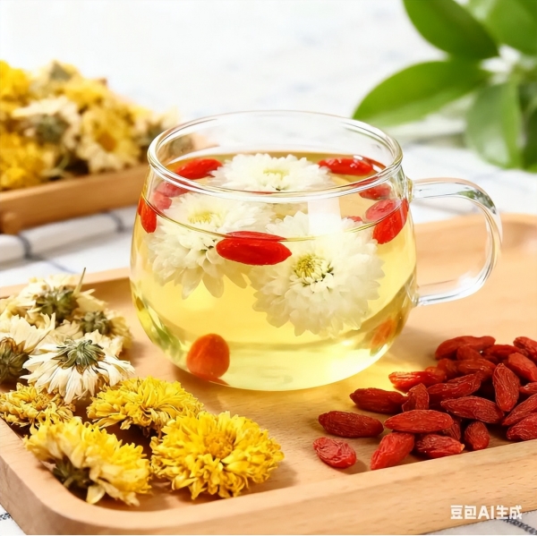 ③菊花枸杞茶:菊花5~8朵、枸杞10粒,冲泡饮用。清肝明目,有助于平稳血压,缓解秋季眼干、头晕。