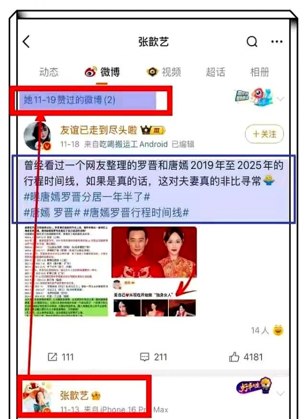 其二是张歆艺那次点赞婚变帖,确实给了很多人"圈内都知道"的错觉。