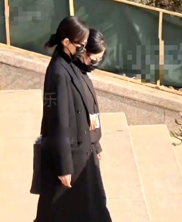 悼念结束,两人站在一起,贴得很近,没有生疏的距离感。