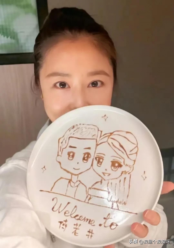 林心如手里拿着一幅与霍建华的双人手绘画像,画上的两人脸贴着脸,亲密的依偎在一起,与他们之前发出来的恩爱照别无二致,看来两人平时也没少贴脸啊,两人已经低调的恩爱了恩爱了9年,宝贝女儿也已经8岁了,真的是温馨的一家三口。