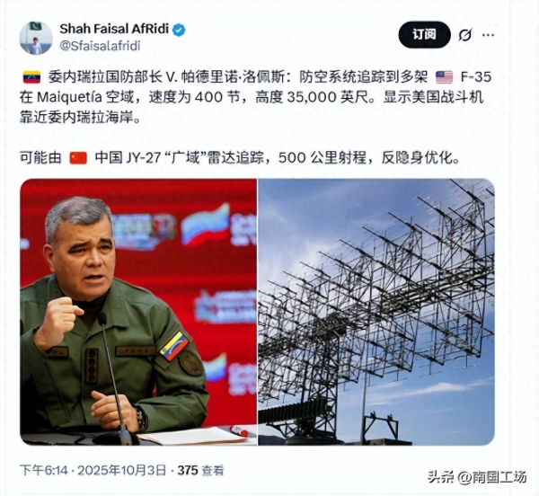 据多家防务自媒体披露,委内瑞拉此次成功锁定F-35,很可能使用的是中国制造的JY-27系列反隐身米波雷达,这套系统以超低频波段著称,拥有500公里级的探测能力,能够在复杂电磁环境中识别隐身目标。