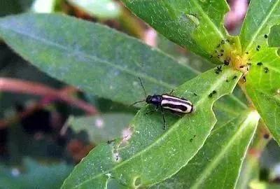 这种水花生叶甲,是一种亚热带物种,专门以水花生为食,而且它们和水花生一样,只要温度适宜,能够很快的繁殖,合适的温度下,只需要25天,就能够繁育一代,一只成虫繁育一代,一般能够繁育30只左右。