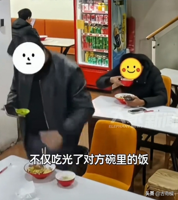 随后,他们几乎同时起身去打汤,返回时竟鬼使神差地走到了对方的座位上坐下,继续低头吃饭,直到把对方碗里的饭吃光,都没察觉自己坐错了位置,也没发现吃的是别人的饭。