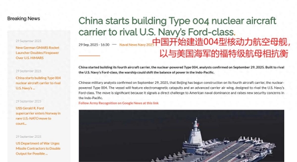 近日,美国《全球防务新闻网》援引分析人士的话称,中国第四艘航母004型航母已经开工建设,而且直接上了核动力,对标美国的福特级航母。
