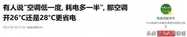 参考资料:陇南武都发布2023年8月8日--有人说"空调低一度, 耗电多一半", 那空调开26°C还是28°C更省电