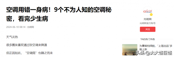 参考资料:光明网2024年6月10日--空调用错一身病!9个不为人知的空调秘密,看完少生病