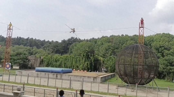 吉林省东北虎园官方公众号一篇推文曾对园内的"马戏嘉年华"表演进行介绍,其中有一项"高空走钢丝"项目,与网传视频中演员的动作相似。文章介绍,表演者会进行头顶倒立、蒙眼走钢丝、睡觉等高难度动作。