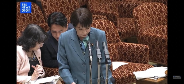 高市早苗在12月16日日本参议院预算委员会会议上进行答辩。