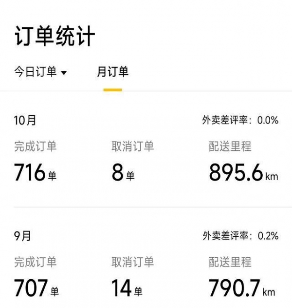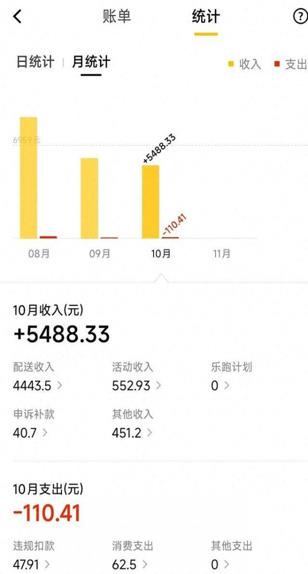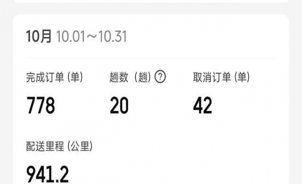 接下来,我们来看看这位骑手十月份的具体工作和收入情况。