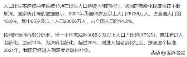 根据国家统计局的数据显示,2021年中国已经进入深度老龄化社会,出生率连续两年负增长,出生人口不到印度一半。
