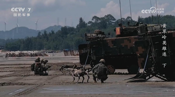 这不是假设。就在国家宣布设立"台湾光复日"的当天,央视《军事新闻》栏目,就展示了陆军"黄草岭英雄连"部队用05式两栖突击车进行实战抢滩登陆演练的画面。该部队从坦克登陆舰上趁着夜色驾驶两栖突击车,开进伸手不见五指的深夜海中,一路向岸边突进,在登陆前,还释放无人机,侦察敌方位置。在登岸后,全员下车作战,最先下车的却是荷枪实弹的机器狗。在整个抢滩登陆作战中,无人机、机器狗的大量应用,减少了人员伤亡,加快了推进速度。