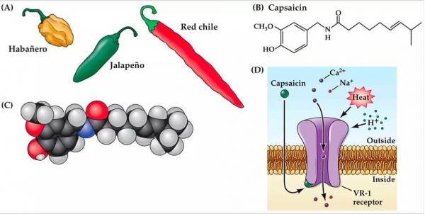 与很多人想的不一样,辣并不是一种味觉,而是一种痛觉。在人的舌头上有酸、甜、苦等一系列味觉感知触点,唯独没有辣。不过我们的舌头上有一个"TRPV1"受体,它其实是用来感知温度的。你喝了一口比较烫的水,舌头会感觉到不舒服,主要就是这个神经末梢受体感觉出来的。辣椒素对它也有激发作用,换句话说,吃辣过后,舌头感觉到的那一种滋味,其实和烫伤之后的疼痛是一样的。