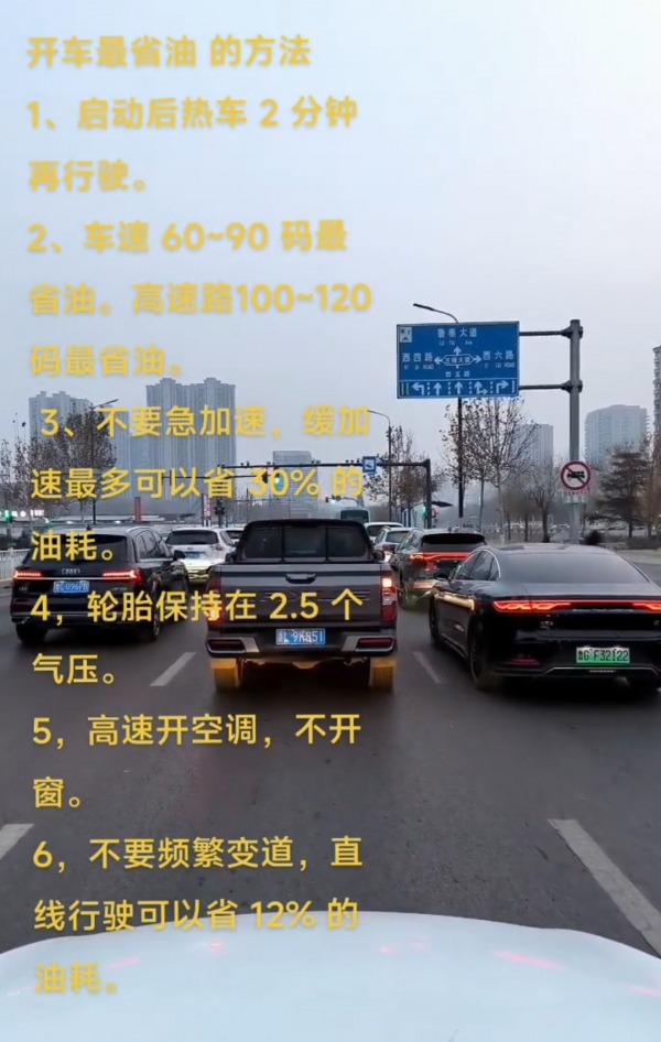 2. 平稳驾驶:少急加速、少急刹车,油耗能降10%以上