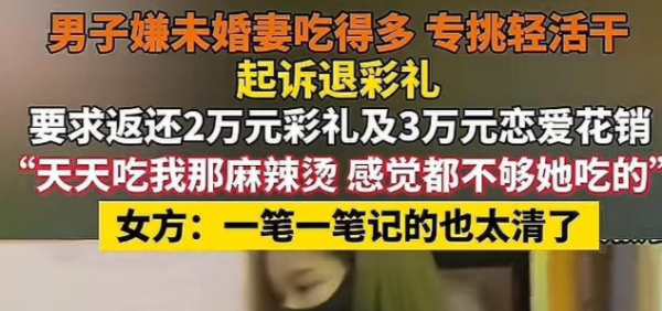 黑龙江哈尔滨,一男子带着未婚妻经营一家麻辣烫店,半年相处下来却发现未婚妻干活总挑轻松的简单的干,还天天吃麻辣烫,感觉赚的都不够她吃,看到这半年为她花的账单,越想越觉得自己吃亏。想及时止损就提出了退婚,要求女方返还彩礼2万和恋爱花销3万起诉至法院,而法院这样判了。