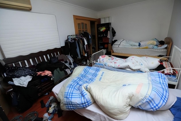 家里就两间卧室,姐姐弟弟已经长成了大姑娘和小伙子,自然不可能住在一起。那就只能让弟弟睡客厅里的破竹沙发上了。