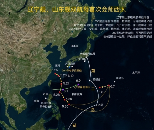 此前从没有人预料到解放军会在第二岛链组织双航母演训,更没人想到在辽宁舰进入硫磺岛附近海域的同时,山东舰会突然以近乎直线的轨迹高速冲向第二岛链。