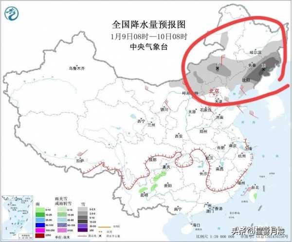9日08时至10日08时,内蒙古中东部、东北地区中南部、华北北部、山东半岛东北部等地部分地区有小到中雪,其中吉林东部、辽宁东北部等地部分地区可能有大到暴雪,需重点防范,预计降雪量10到12毫米。贵州西部、云南东北部、台湾岛东部等地部分地区有小雨。
