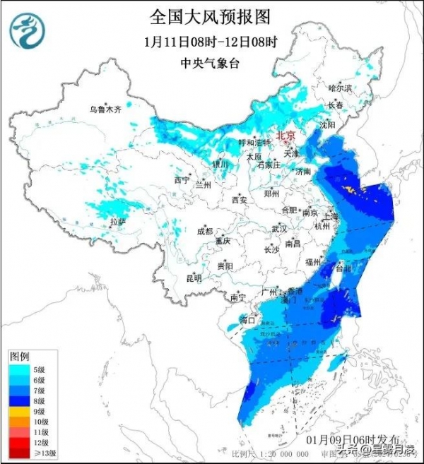 11日起大风逐渐减弱,内蒙古大部、甘肃北部、西北地区东北部、华北北部、辽东半岛、山东半岛等地部分地区有5到6级风,部分地区阵风7到8级。