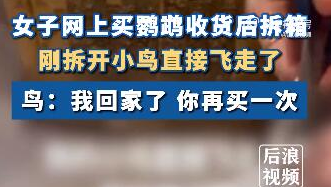 7月28日,湖南湘潭。女子网购鹦鹉收货后记录开箱过程,打开箱子剪开密封袋瞬间,小鸟直接飞走了,第二天给自家鹦鹉解释:你老婆跑了。