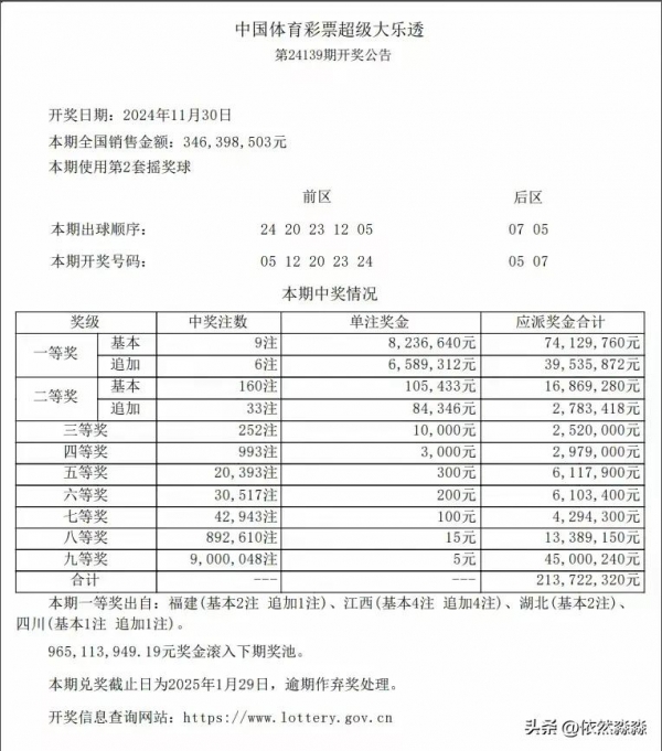 大乐透24139期开奖结果