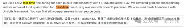对于测试集中的每一个新谜题,他们不会直接预测答案,而是先利用该谜题给出的几个示例,快速用LoRA技术微调一下模型。