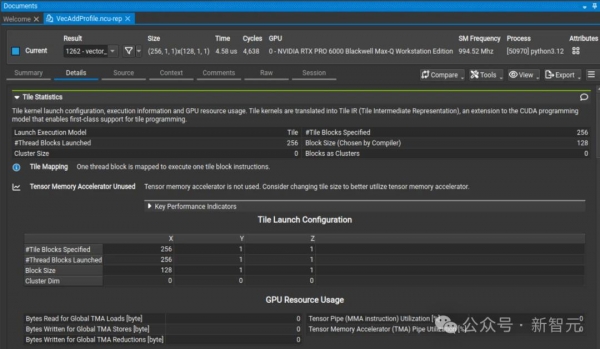 NVIDIA Nsight Compute 2025.4增加了对分析CUDA Tile Kernel的支持。