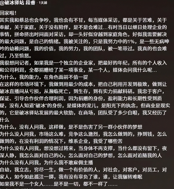12月29日凌晨,妻子段睿发文,用了一串夹杂着不甘和愤怒的句子