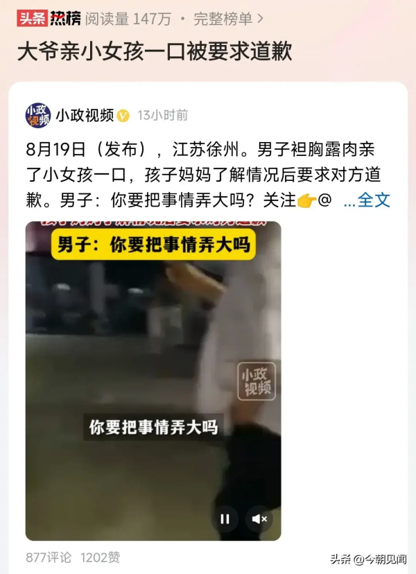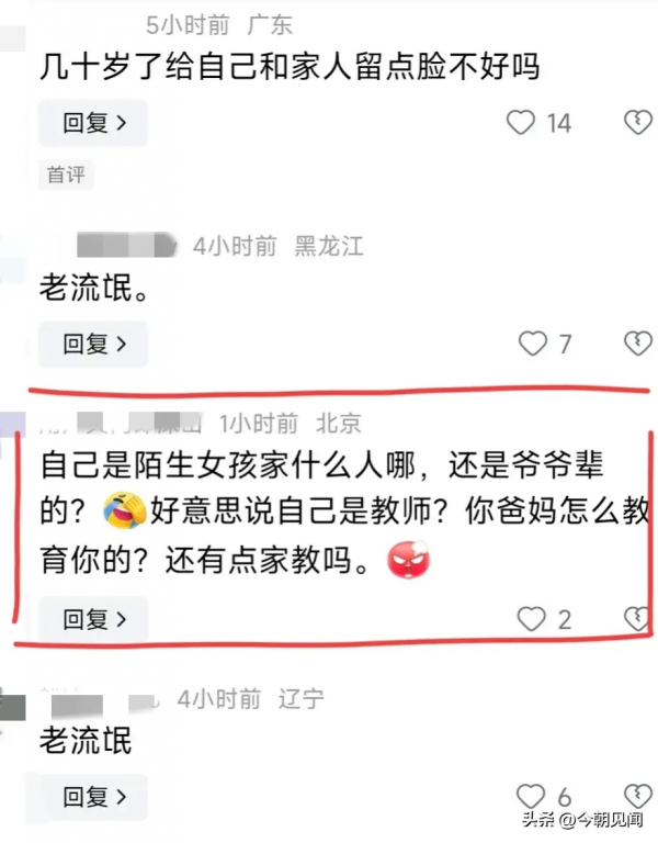 大爷还在指责这个女孩母亲,大声说:"你要把事情弄大吗?""真正的流氓亲了就会跑"