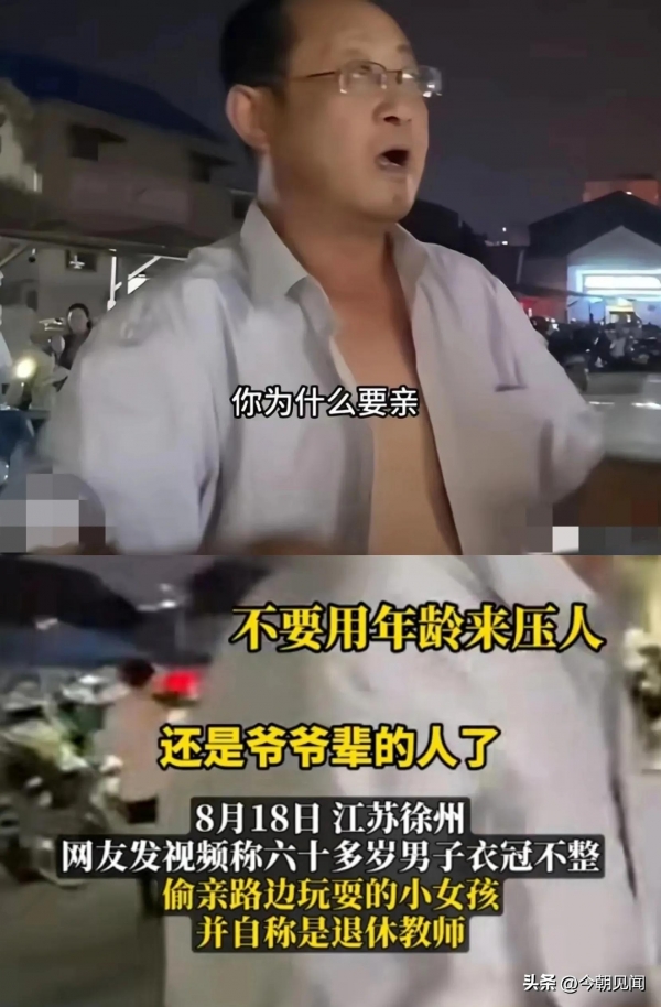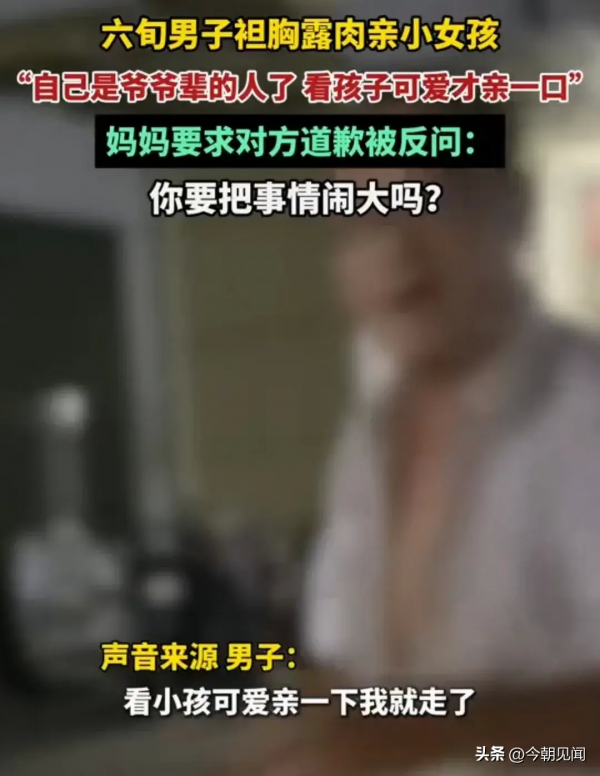 太离谱了,江苏徐州一袒胸露乳的大爷在没有获得女孩家属的同意下就偷亲了一口女孩。女孩母亲看着自己的女儿被人给亲了,大爷衣冠不整,还一脸猥琐的表情,女孩母亲心里非常生气。