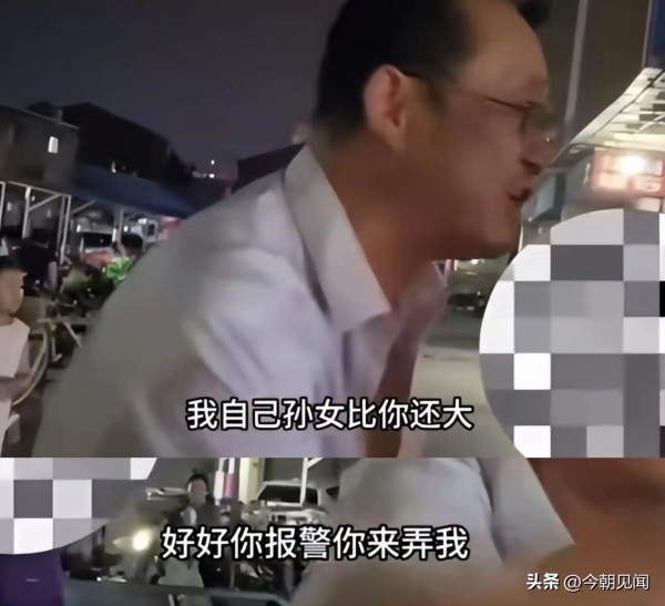 老大爷情绪非常激动,还用手指比划着,大声呵斥说:"我自己孙女比你还大,你要报警那就报!"