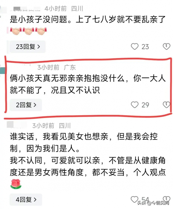 自己孙女和陌生女孩能一样吗?不经别人允许就偷亲小女孩,说白了就是违法行为。
