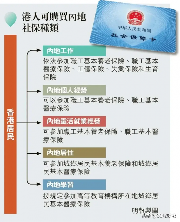 ◎ 港人在内地可以购买的社保种类。/图:明报