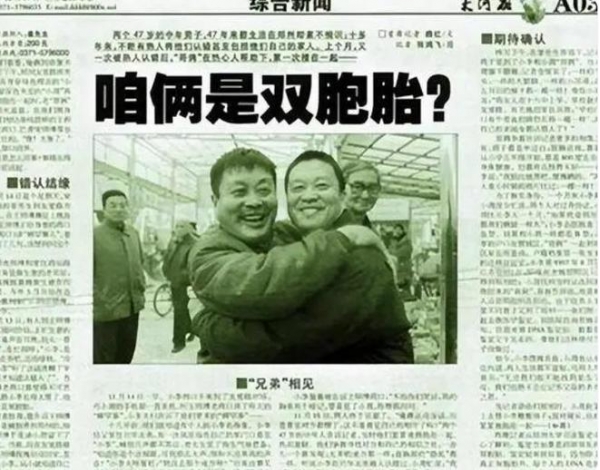 没想到相隔数年,从少不更事到人已中年,从上海到洛阳再到郑州,自己兜兜转转、几经周转,在历经人世变幻、岁月沧桑后,终于找到了世界上的一位亲人,竟然是自己同卵双生的亲兄弟。