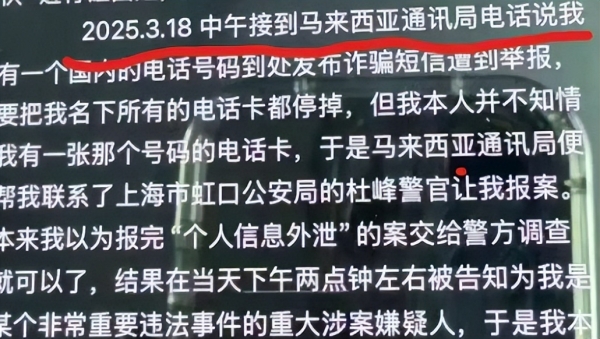 3月18日,也就是留学的第五天,小文突然接到一个电话,对方自称是马来西亚通讯局的。