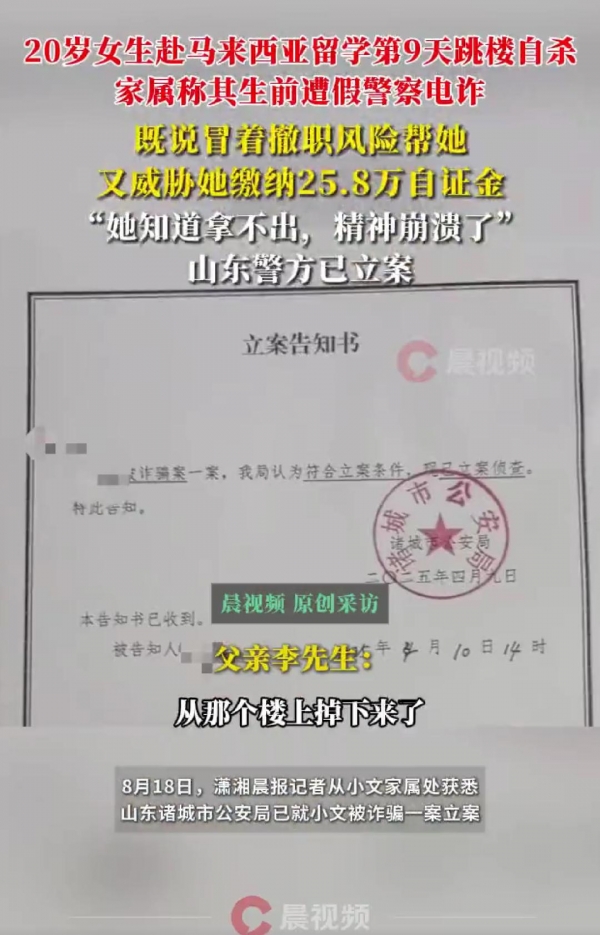 从那之后,小文就没再回消息,家里也联系不上她了,最后等来的就是女儿坠楼的噩耗。