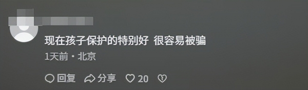 还有网友说"现在的孩子被保护的太好了,很容易被骗。"