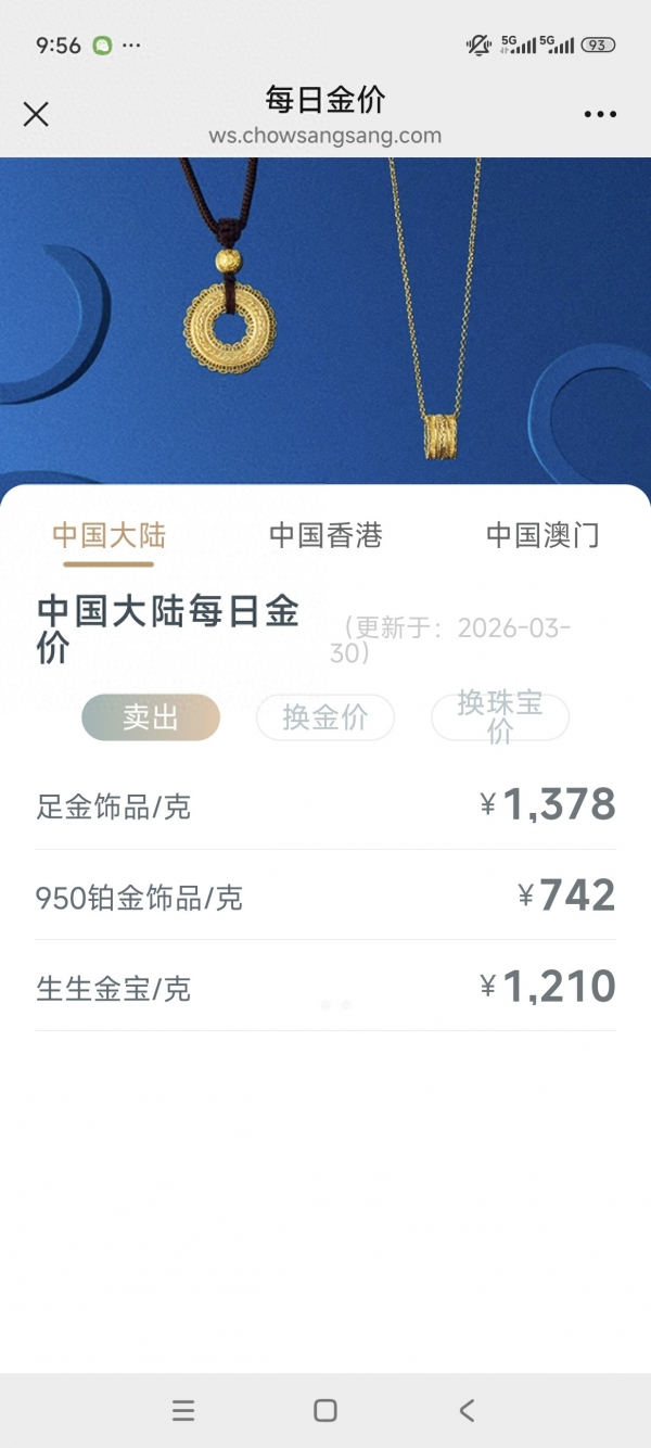 受此影响,国内金饰方面,周生生的金饰价格从昨日的1391元/克,跌至今日的1378元/克,跌了13元。
