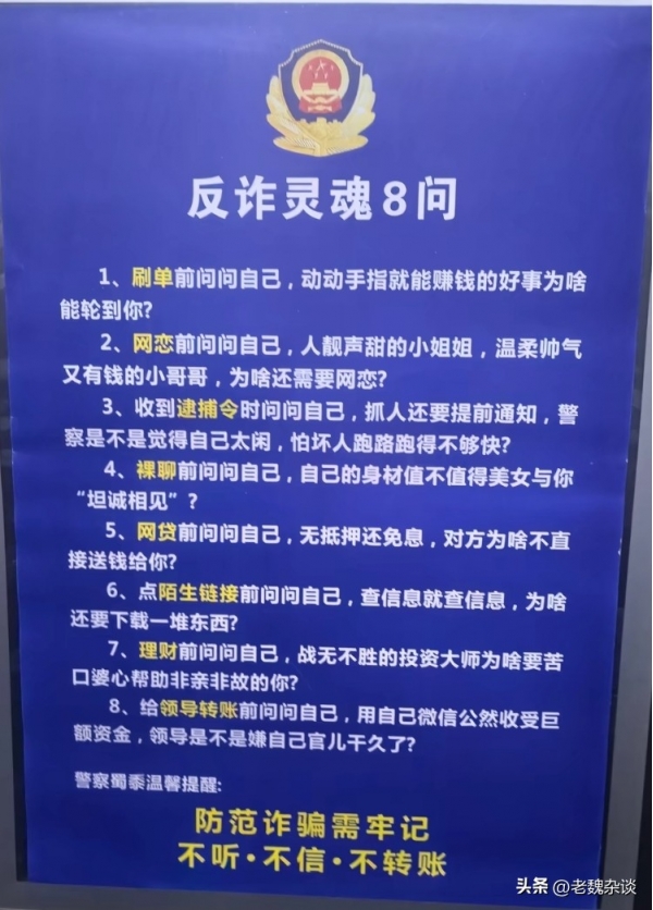 各种诈骗手段层出不穷!大家一定要捂紧自己的钱袋子,尤其是涉及到投资、转账,哪怕是熟人介绍,也务必多核实、多警惕。记住警方的话:天上不会掉馅饼,网上突然降临的"高富帅/白富美"加"生财之道",绝对是陷阱的组合拳!