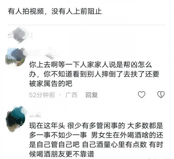 在这起事件中,关于旁观者的冷漠引发了许多讨论。有些人认为,旁观者没有及时干预是出于自我保护,因为在这个快节奏的社会,谁都不想为了陌生人去冒险。还有人指出,现代社会的道德标准发生了变化,许多人对陌生人遭受不公的事情选择视而不见,甚至冷漠以对。