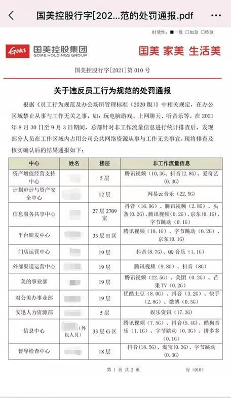 2021年11月16日,国美通报员工看视频、刷抖音、听音乐等"摸鱼"行为,并给予相关处罚。企业监控员工上网情况,让半数以上网友表示"无法接受"。