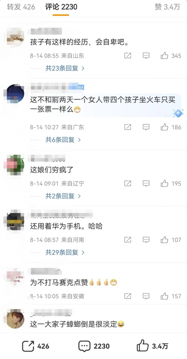 还有说"和前面几天一妈妈带4个孩子坐高铁不买票拒补票差不多"