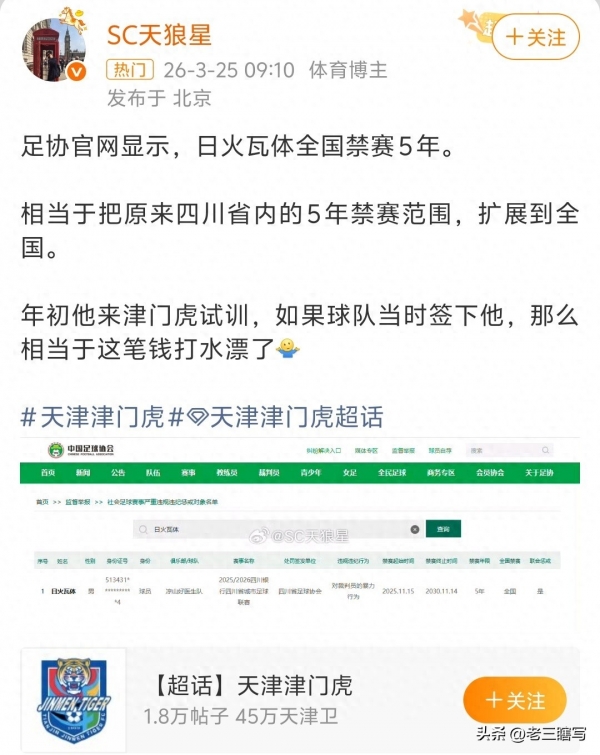 北京时间3月25日,中国足协官方官方网站的信息显示