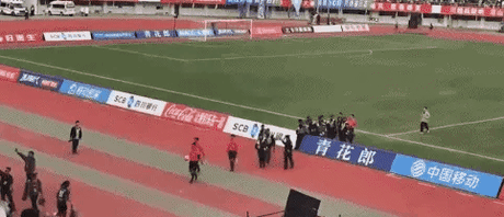 已经被罚下的日火瓦体,突然从体育场的防爆沟里突然杀出