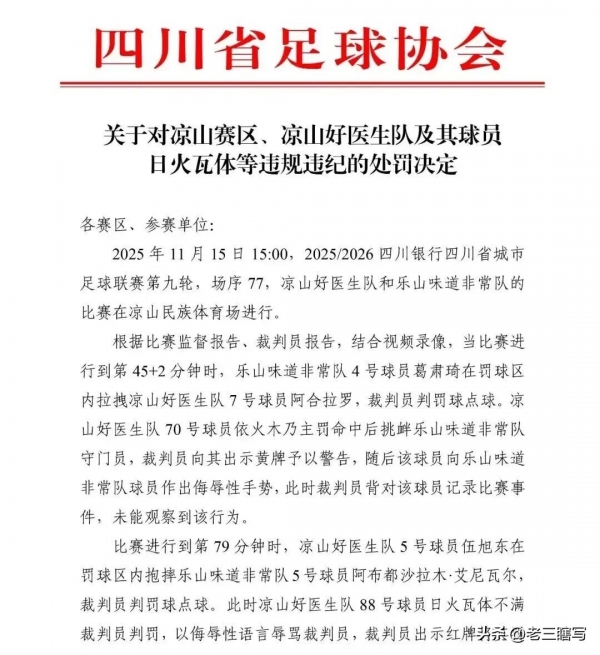 这一判罚激怒了凉山队88号球员日火瓦体