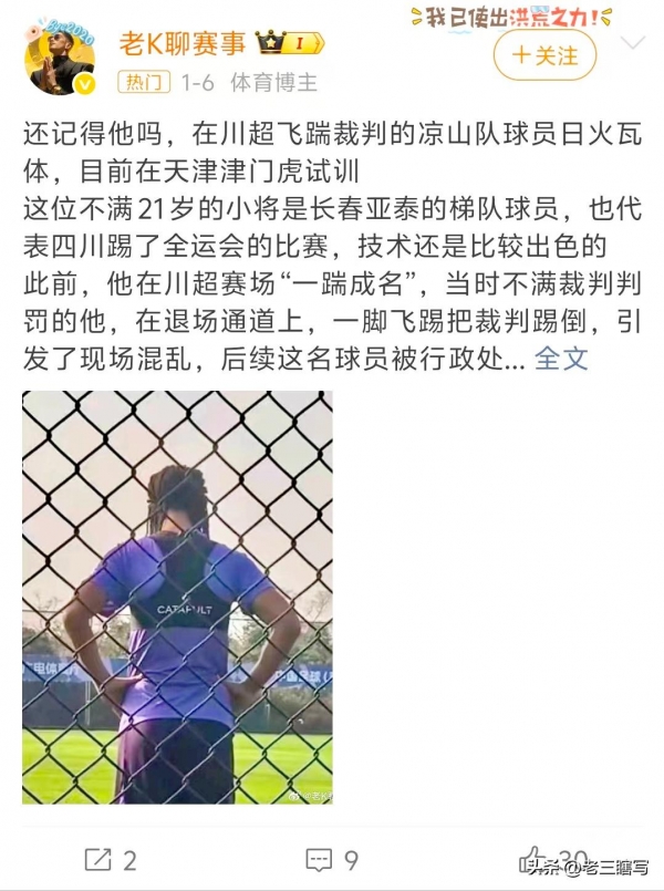 日火瓦体竟然出现在了中超天津津门虎的试训名单中