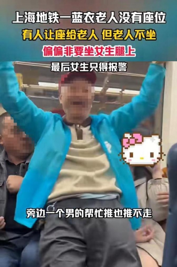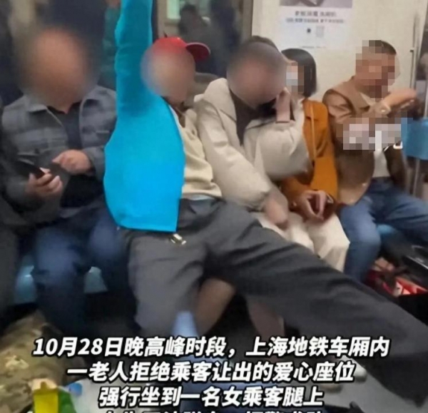 光天化日,众目睽睽之下,一个老人拒绝了别人让出的爱心座,转头强行坐到了一位年轻女孩的大腿上。